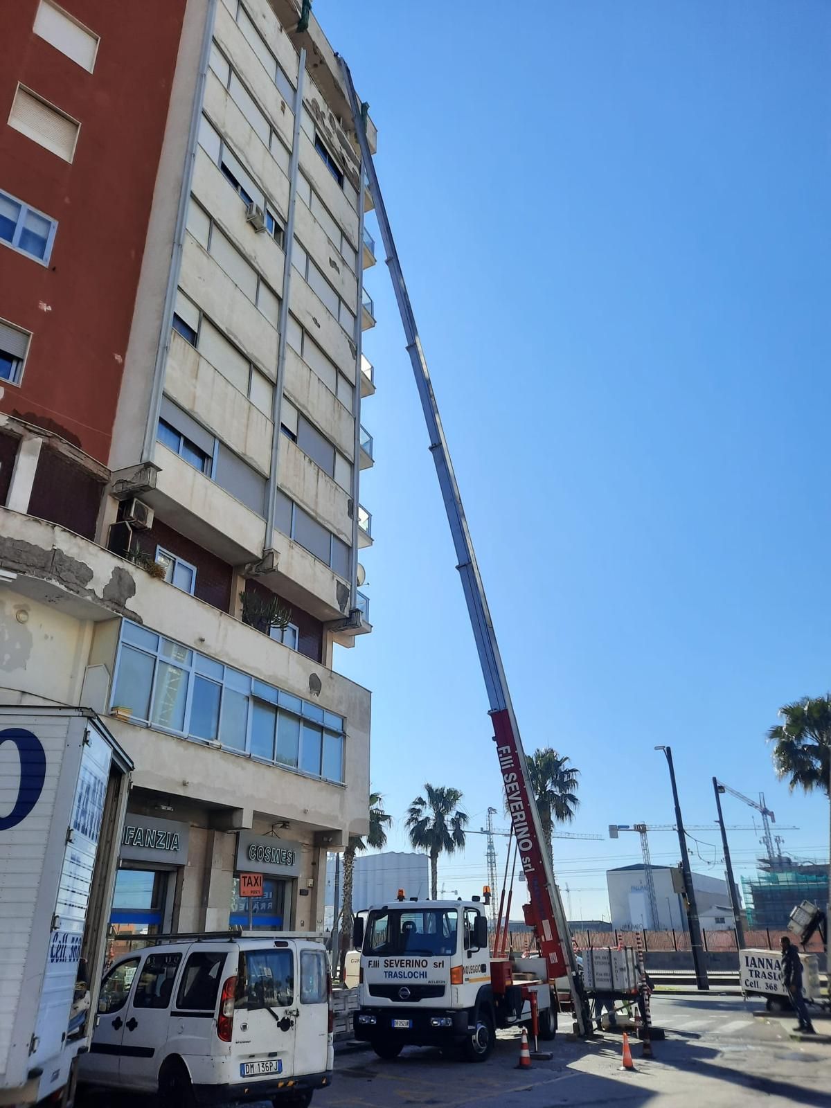 Scopri alcuni dei nostri interventi di noleggio autoscale a Napoli e nei principali quartieri della città. Dalle operazioni nei vicoli del Centro Storico agli interventi in condomini al Vomero, Fuorigrotta, Chiaia e Posillipo, ogni lavoro testimonia professionalità, sicurezza e precisione. Le immagini mostrano le nostre autoscale in azione in diversi contesti urbani, dimostrando l’efficacia dei nostri mezzi anche in spazi complessi e ad alta densità abitativa.